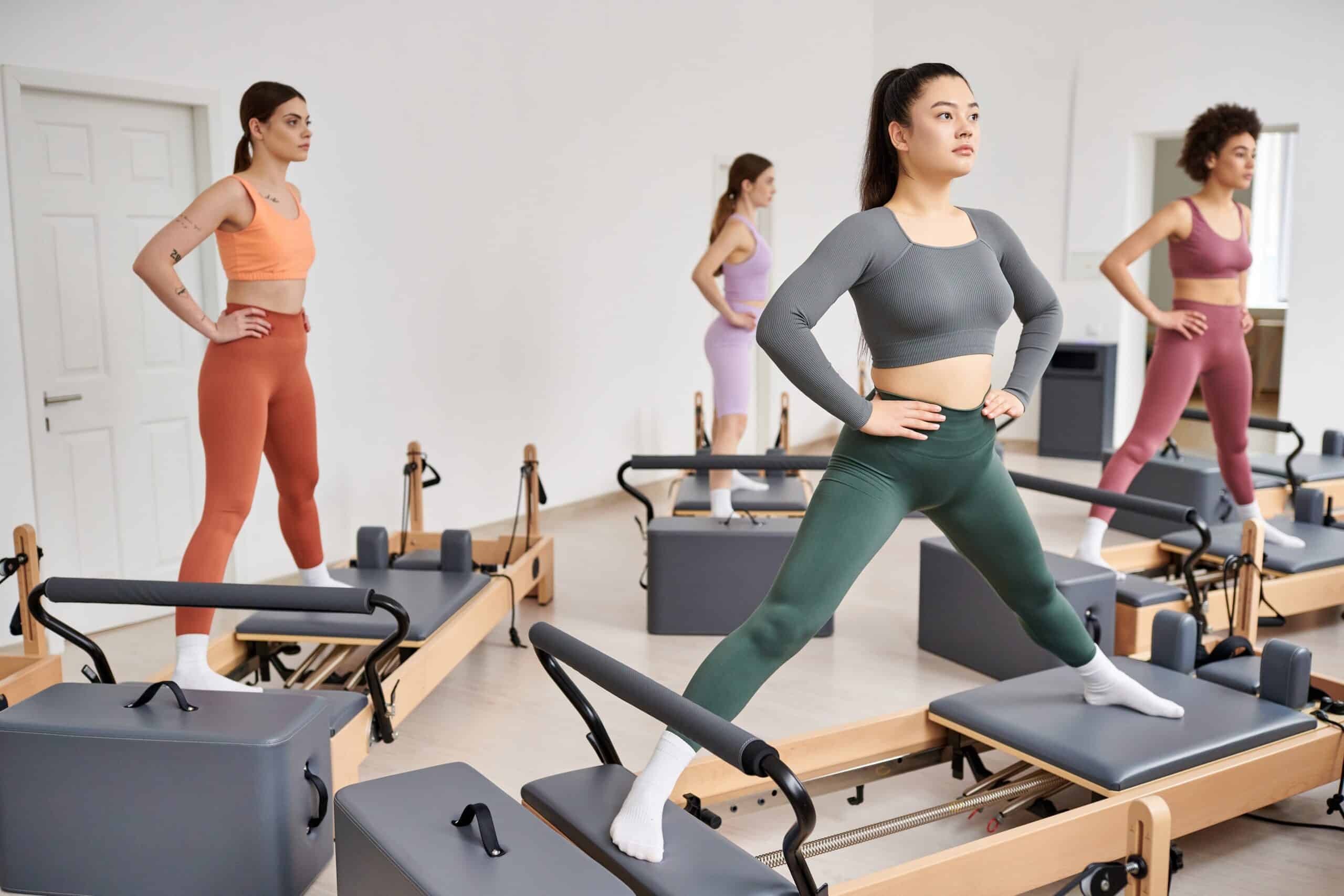 Group,Of,Sporty,Women,Exercising,In,A,Pilates,Class.
